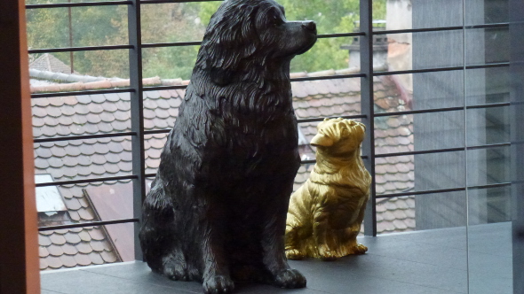 | Wo die Zeichen steh'n zur Stund' Sitzt ein großgewachs'ner Hund. Neben ihm da sitz der kleine, Ganz aus Gold, der Superfeine. | ||||||||||||||||||||||||||||||||||||||||||||||||||||||||||||||
